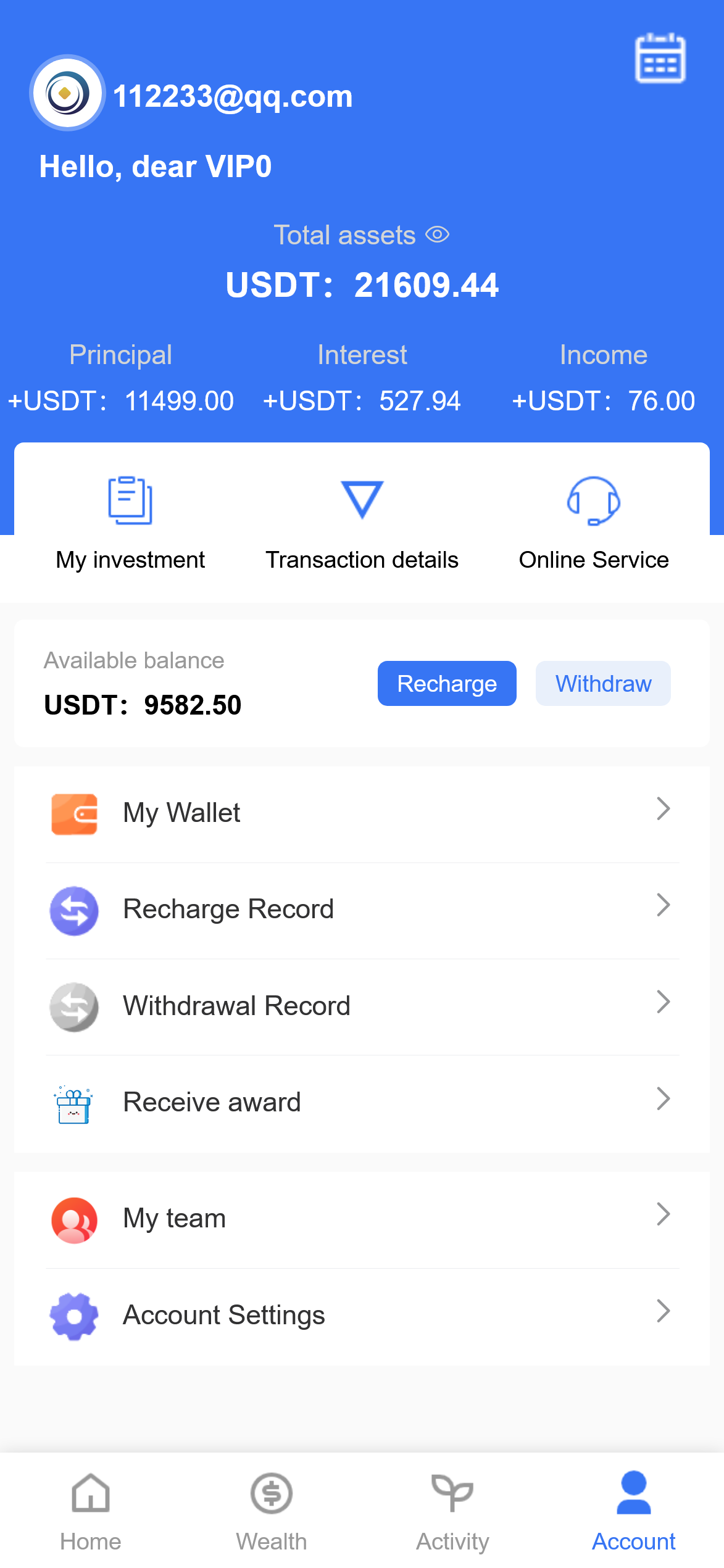 当前位置:首页精品资源 正文 八语言海外基金投资理财返利源码【亲测】+VUE未编译源码在原来的基础上又二开增加了小时返利活动!本系统可定制二开功能!免责声明:1.本站提供的一切源码、教程和内容信息仅限用于学习和研究目的;不得将上述内容用于商业或者非法用途! 2.本站信息来自网络收集整理,版权争议与本站无关。您必须在下载后的24个小时之内,从您的电脑或手机中彻底删除上述内容! 3.本站提供的源码,模板,插件等其他资源都不包含技术服务,敬请谅解! 4.本站资源售价只是赞助,收取费用仅维持本站日常运营所需! 5.本站不保证所提供下载的资源准确性安全性和完整性,源码仅供下载学习之用! 6.如用于商业或者非法用途,与本站无关。一切后果请自行负责! 标签:理财