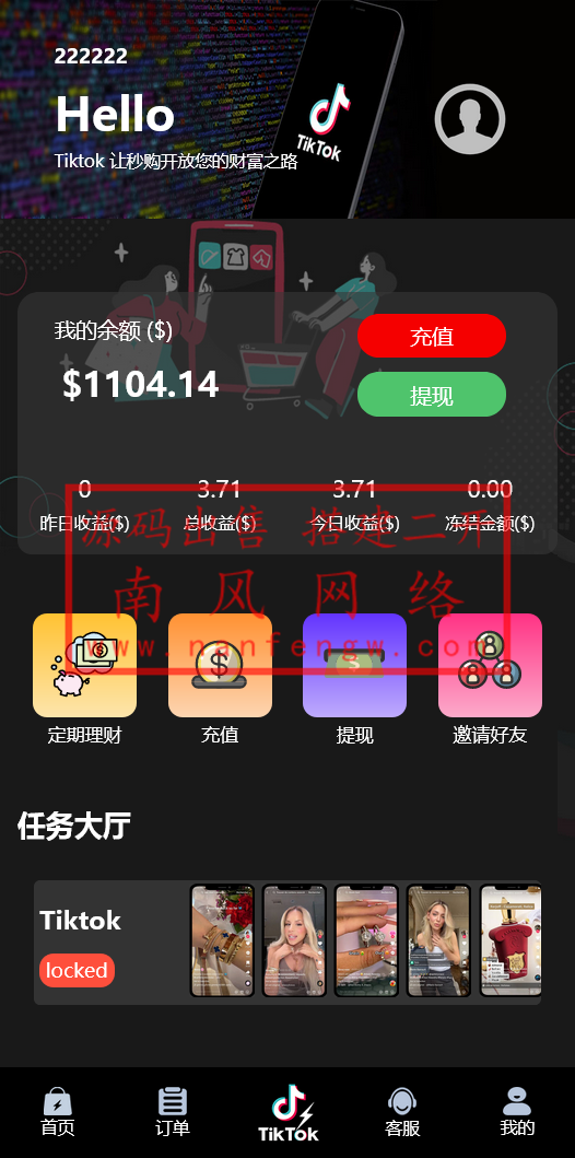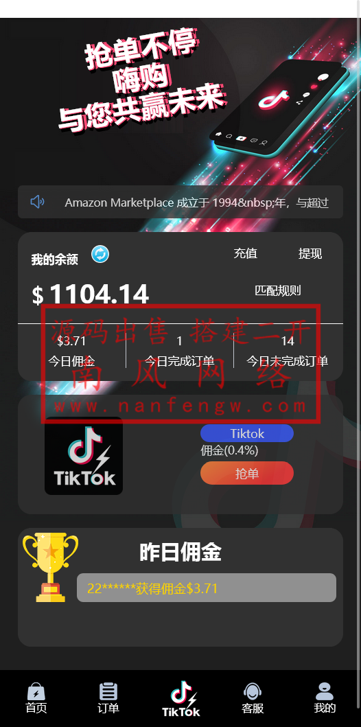 当前位置:首页精品资源 正文 独家二开新UI多语言TIKTOK抢单刷单系统带预约爆弹功能 爆单金额可自由设置!免责声明:1.本站提供的一切源码、教程和内容信息仅限用于学习和研究目的;不得将上述内容用于商业或者非法用途! 2.本站信息来自网络收集整理,版权争议与本站无关。您必须在下载后的24个小时之内,从您的电脑或手机中彻底删除上述内容! 3.本站提供的源码,模板,插件等其他资源都不包含技术服务,敬请谅解! 4.本站资源售价只是赞助,收取费用仅维持本站日常运营所需! 5.本站不保证所提供下载的资源准确性安全性和完整性,源码仅供下载学习之用! 6.如用于商业或者非法用途,与本站无关。一切后果请自行负责! 标签:抢单刷单亚马逊